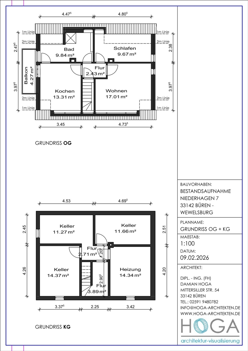 - Kürzlich wurden ein neues, vollständiges Aufmaß und entsprechende Pläne, Wohnflächenberechnung und Kubatur durch einen Architekten erstellt.