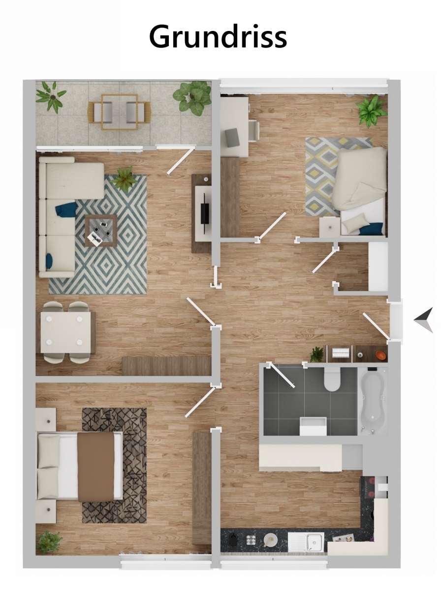 • 3 Zimmer: Wohnzimmer, 2 Schlafzimmer