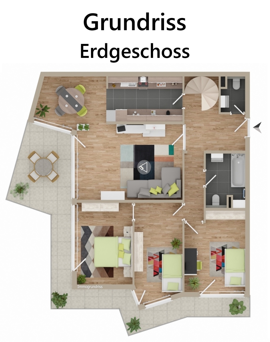 - Ca. 123 m² Fläche, 5 Zimmer (davon 4 Schlafzimmer)