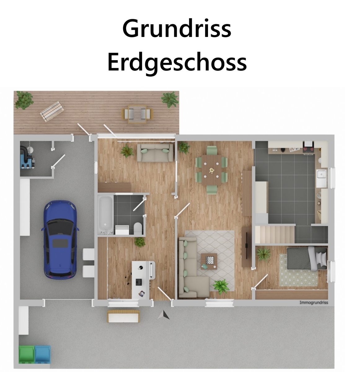 - Große Garage mir Waschmaschinenanschluss und separatem Abstellraum für Heiztherme