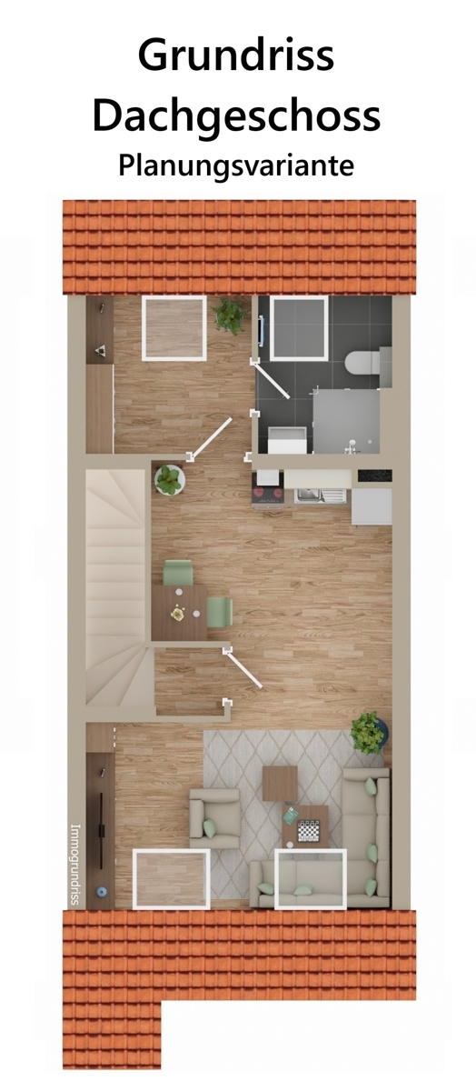 - Dachgeschoss: ausbaufähig, ca. 37,35 m², vielseitig nutzbar (z. B. zusätzliches Schlafzimmer, Wohnbereich oder Kinderzimmer mit Badezimmer oder Küchenmöglichkeit)